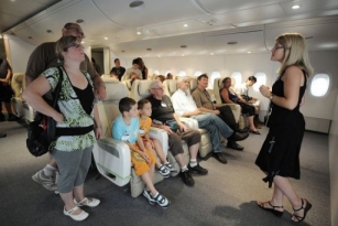 We are directly in the atmosphere with the announcement of the guide : « Ladies and Gentlemen, your attention please, we are now ready for the boarding of the A380 Tour ! ».