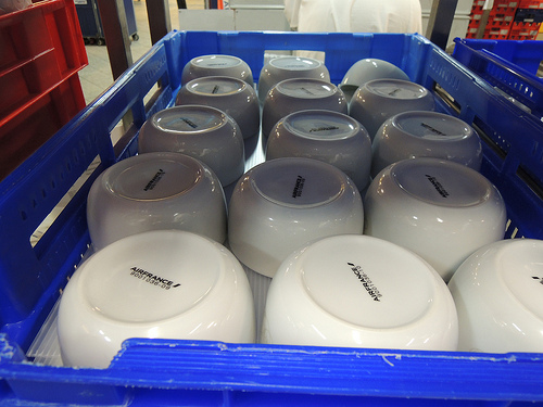 Logistics is here different because of the quantity produced. It is less manual and more automated than for business class meals.