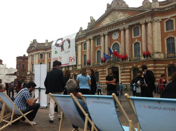 Puis l’on découvre la date du premier volet de l’Expérience Air France, le 8 juin dernier. Le rendez-vous était pris place du Capitole, et voilà la vidéo de ce qui s’y est passé !