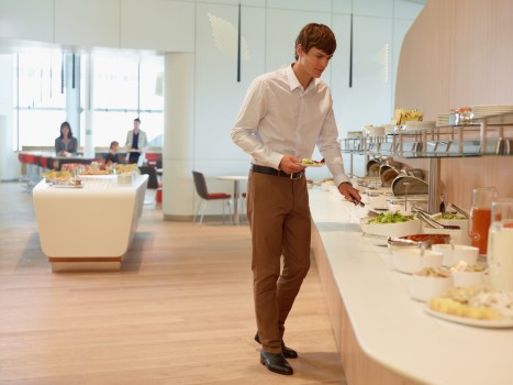 L’espace de buffet chaud avec au fond, la salle où vous pourrez apprécier votre déjeuner © Air France