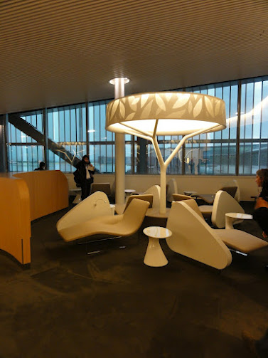 Comme on le voit sur la dernière photo, les passagers avec un temps de correspondance long (il peut aller jusqu’à 6h) trouveront dans le salon des fauteuils inclinés qui leur permettront de s’allonger en attendant leur départ.