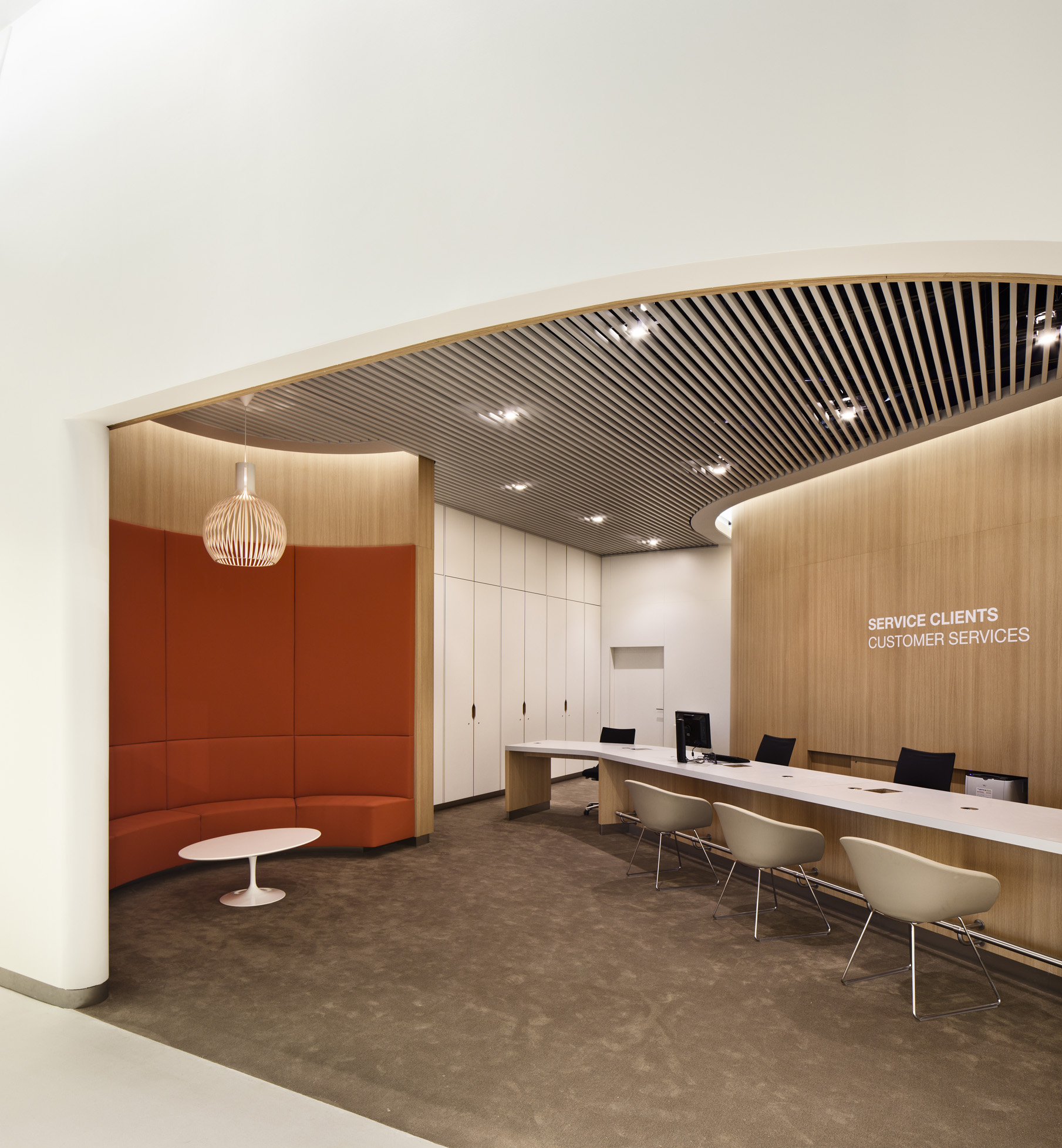 D’emblée on ne peut qu’être conquis par la douceur de la lumière. Après quelques mètres, nous voici dans le salon, avec pour commencer, le guichet d’enregistrement.