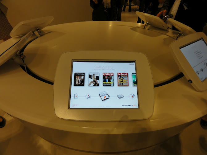 Cette offre de presse sur tablette complète idéalement l’offre de presse papier présente également, comme dans tous les salons Air France.
