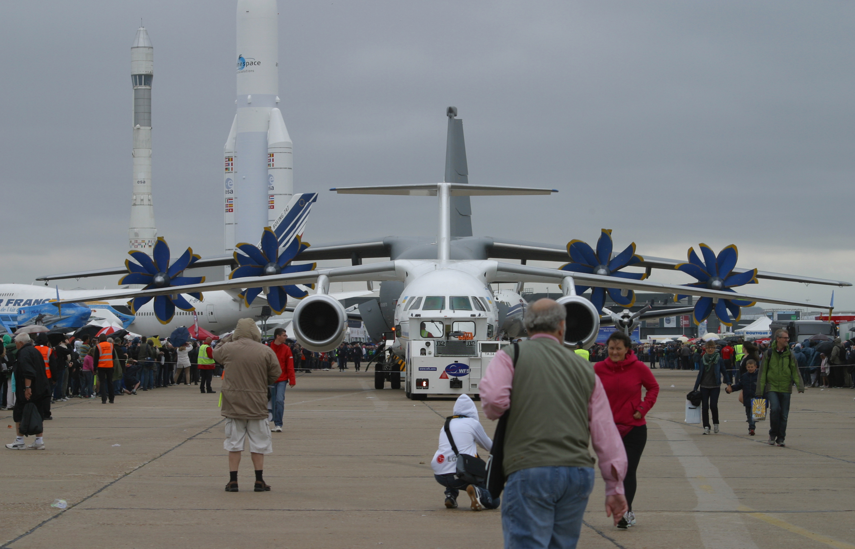 Comme à chaque fois, le Bourget a fait déplacer les foules de passionnés, de professionnels et de curieux. Après quelques dizaines de minutes de marche pour s’éviter l’entassement dans les navettes, nous y voilà. On aperçoit au loin un grand panneau de publicité Airbus pour l’A380, des avions de chasse devant lesquels les gens font la queue pour s’installer quelques instants dans le cockpit et rêver à la vie de pilote de l’armée de l’air… le Paris Air Show 2013, c’est parti !