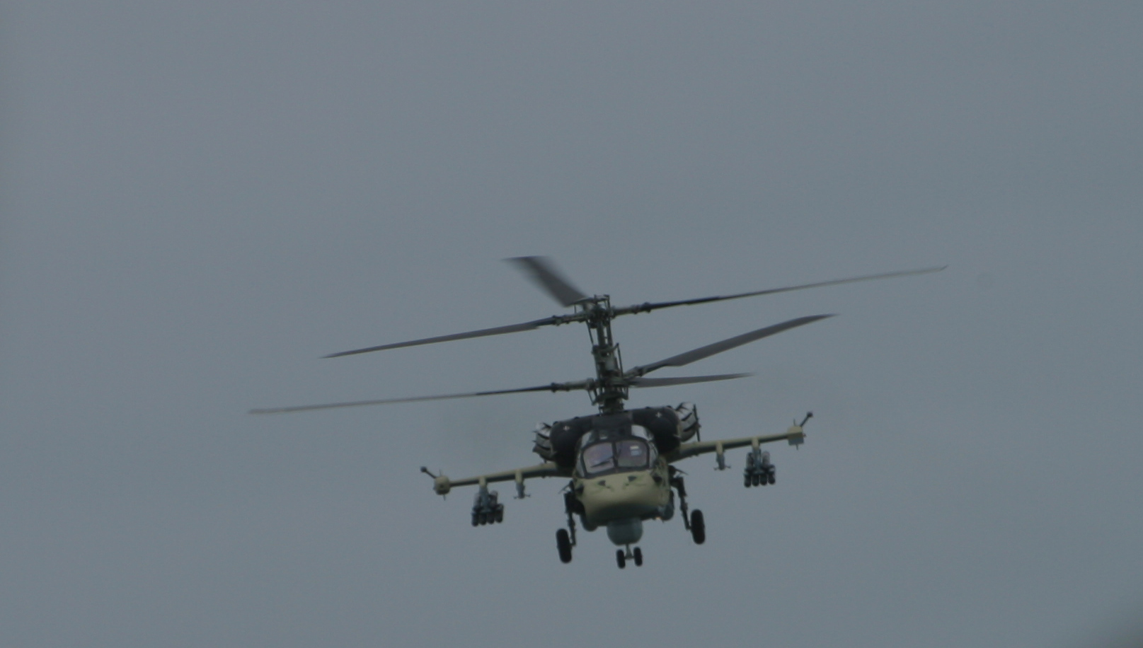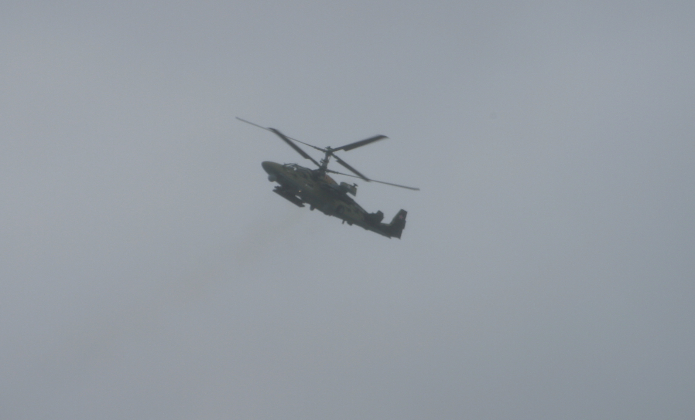 Mais relevons les yeux vers le ciel pour, après quelques démonstrations d’autres petits avions (pas de vraie belle photo malheureusement), l’arrivée de l’impressionnant hélicoptère Kamov Ka-52 Alligator. Impressionnant, il l’est pour plusieurs raisons : son double-niveau d’hélices d’abord, son bruit ensuite et ses différents lance-missiles. Je vous laisse juger par cous-mêmes avec ces quelques photos :