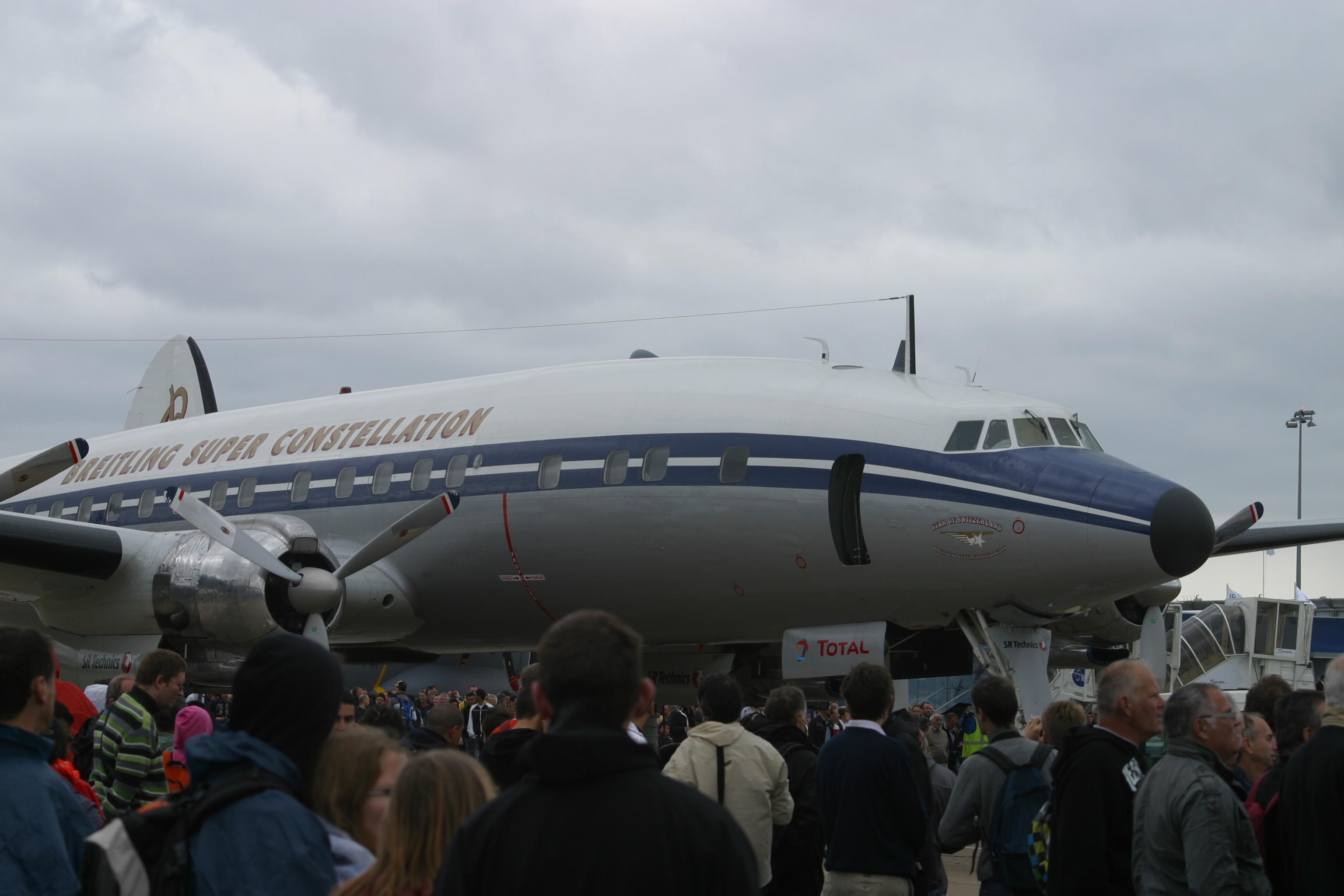 Et non, vous ne rêvez pas. La foule a été traversée par un défilé d’appareils se préparant pour le show. Ici on voit très bien l’Antonov AN-158 suivi de près par son collègue l’AN-70. Puis est arrivé derrière le Super Constellation et un petit appareil RedBull. Le déplacement des ces 4 avions a créé un peu de confusion, d’autant plus qu’ils sont longuement restés immobilisés. Je ne me souviens pas que ça se soit passé comme ceci sur les derniers salons.