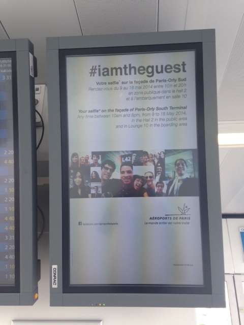 Cette semaine, la page Facebook d’Aéroports de Paris dévoilait un mystérieux hashtag : #Iamtheguest. Le suspens a pris fin le 9 mai avec le dévoilement d’une très belle campagne. Aéroports de Paris vous propose en effet de vous photographier sur l’un des stands #Iamtheguest d’Orly et ainsi de figurer sur une fresque géante de 2000 à 3500 « selfies » (photos de soi-même) qui sera affichée sur la façade d’Orly Sud. L’idée est de mettre à l’honneur ceux qui font vivre l’aéroport d’Orly, à la fois les passagers et le personnel.