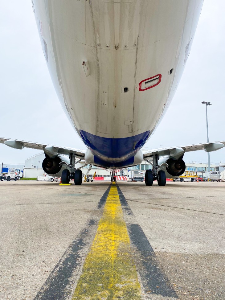 Rien à signaler sur le F-HTVO, tout est en ordre ✅, on pourrait décoller 🛫 (si seulement !). Dernier petit plaisir pour clôturer le tour, passer sous le ventre coloré du 737, un point de vue tellement photogénique 😍