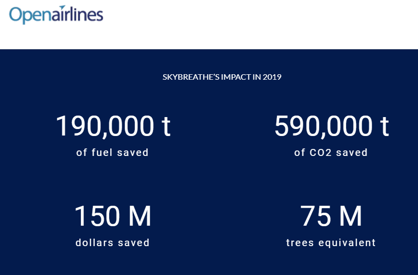 Accompagner les compagnies dans l’optimisation et la réduction de leur consommation carburant, c’est l’une des missions que s’est donnée OpenAirlines. Créée en 2006, cette entreprise française (cocorico 🇫🇷) s’est spécialisée dans l’utilisation des big datas et de l’intelligence artificielle pour définir des modèles qui prodiguent des conseils et répertorient des bonnes pratiques de « fuel saving » aux pilotes. Le logiciel qui permet ce suivi, c’est SkyBreathe. Il est utilisé aujourd’hui par 39 compagnies aériennes dans le monde entier. Selon le site Internet de OpenAirlines, SkyBreathe a permis en 2019 d’éviter le rejet de 590 000 Tonnes de CO2 dans l’atmosphère.