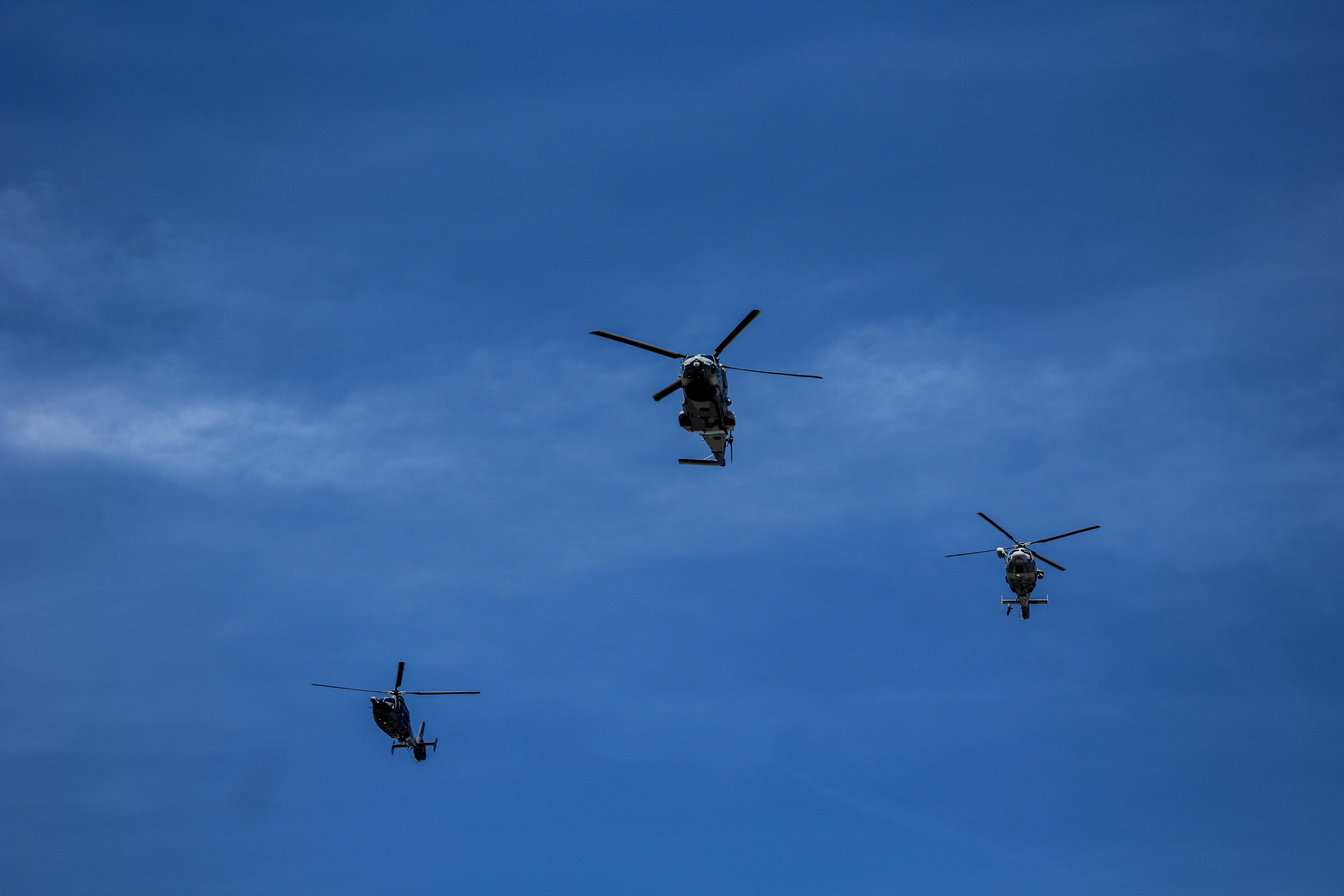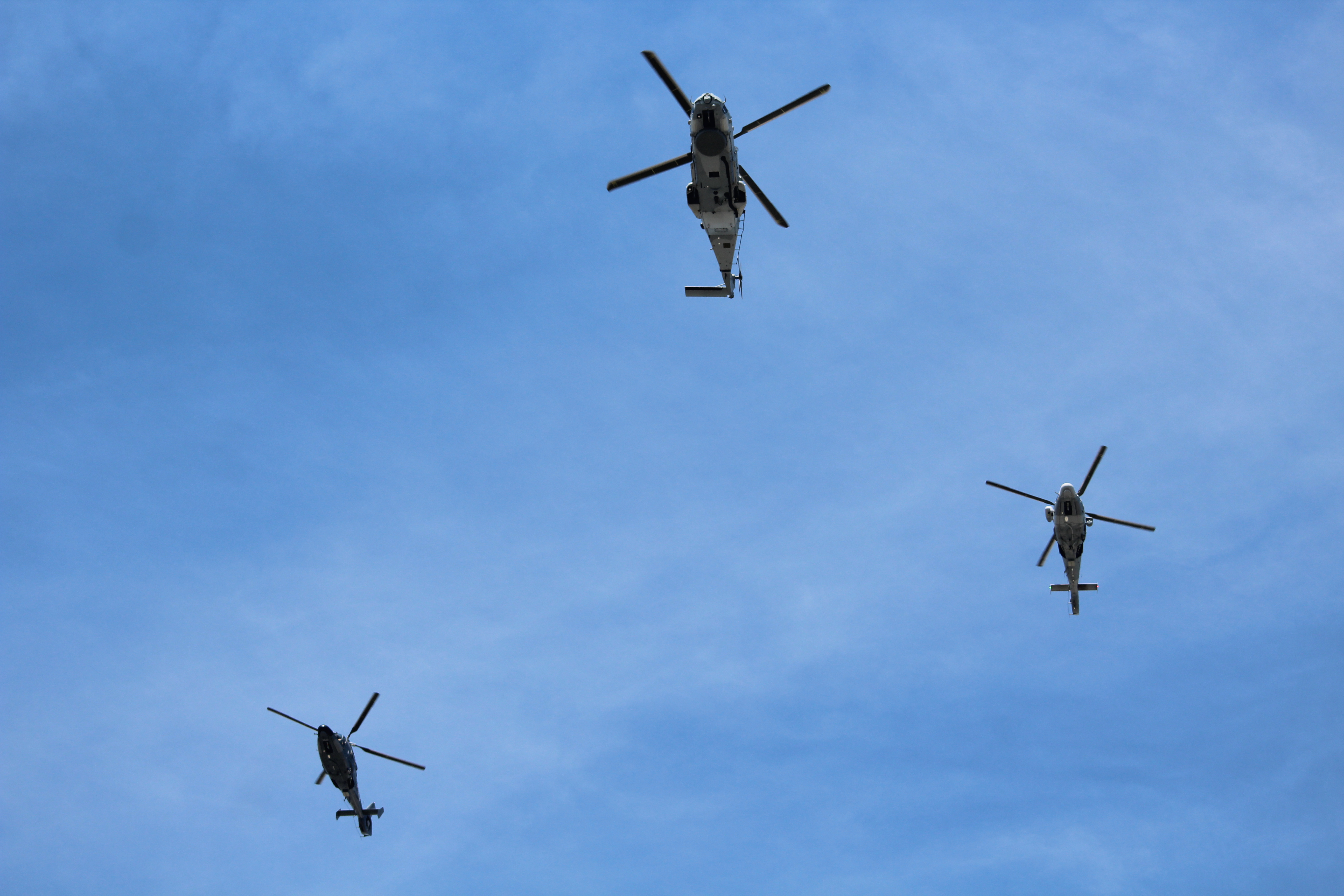 Après le défilé des avions, place à celui des hélicoptères en clôture. Je vous avoue que je m’y connais beaucoup moins qu’en avion, mais c’est toujours un plaisir de les photographier. Je me suis déplacée pour les photographier, en passant de l’esplanade à l’Arche de la Défense directement.
